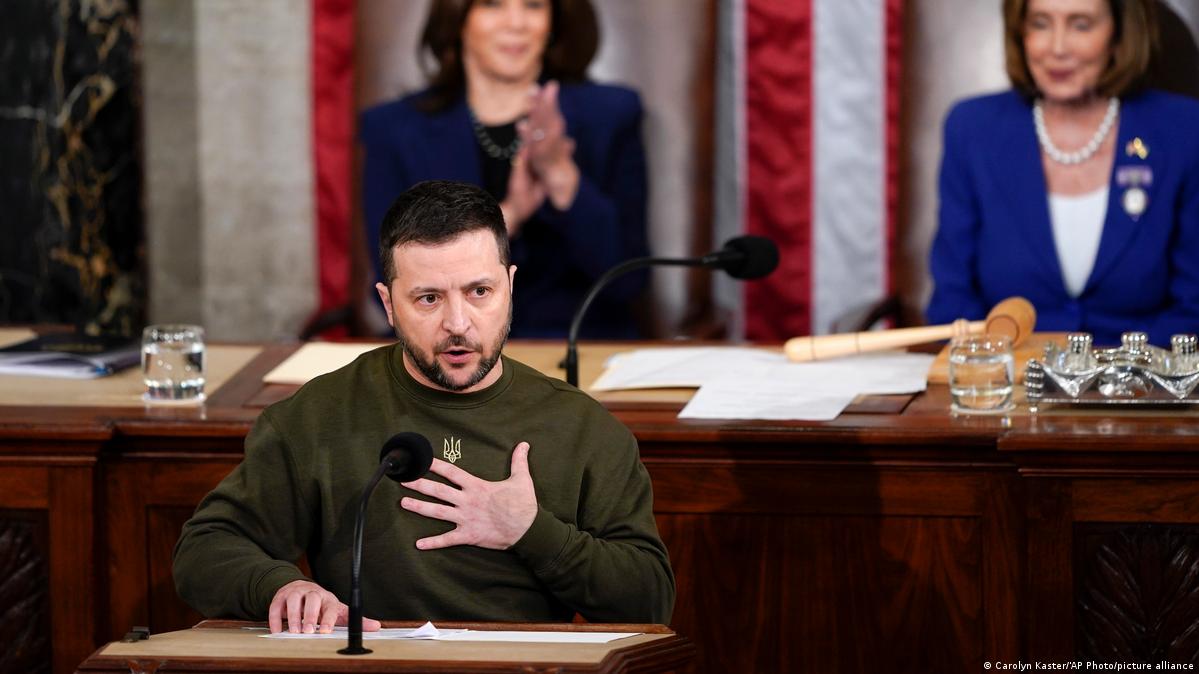 زلنسکی، رئیس جمهوری اوکراین، چهارشنبه شب در سخنرانی خود در کنگره آمریکا بیشتر وقت خود را به انتقاد از روسیه و ایران و تشکر از حمایتهای ایالات متحده آمریکا اختصاص داد. زلنکسی در این سخنرانی گفت روسها از هرچه که دستشان بود علیه شهرهای اوکراینی استفاده کردند، اما اوکراین جبهههای خود را حفظ میکند و هرگز تسلیم نمیشود. وی افزود سال گذشته، هفتاد هزار نفر در شهر باهموت زندگی می کردند. اکنون فقط چند غیرنظامی باقی ماندهاند. هر وجب از آن سرزمین غرق در خون است دونباس چندین بار در نبردهای شدید و حتی درگیریهای تن به تن دست به دست شد. اما دونباس اوکراینی همچنان استوار است.
