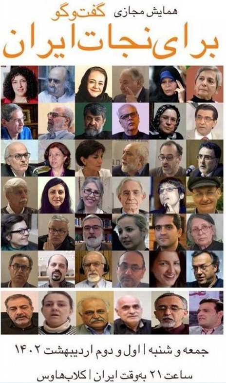 دیروز جمعه و امروز شنبه ۴۲ نفر فعال سیاسی در یک “تمرین سخنرانی” یا به عبارتی همایش مجازی در زمین بازی جمهوری اسلامی (یعنی همان کلاب هاوس ـ که بنده در مورد آن بارها مقاله نوشته ام) گرد هم آمده اند تا برای نجات ایران گفتگو و یا بگو مگو داشته باشند. ظاهرا برای خالی نماندن عریضه از یک کرد و یک مشروطه خواه سابق دعوت نیز شده است. اگرچه اکثر مدعوین از طیف اصلاح طلب, ملی مذهبی, نواندیش دینی, چپ و جمهوریخواه هستند.