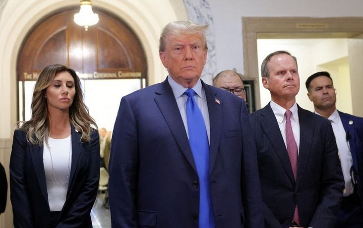 ترامپ قبل از شروع محاکمه به خبرنگاران گفت که این پرونده یک کلاهبرداری، پاپوش و یک انتقام‌گیری سیاسی است و دادستان را یک فرد فاسد، یک فرد وحشتناک که می‌خواهد مردم را از نیویورک فراری دهد، خواند.