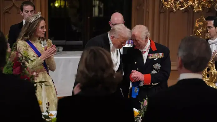 چارلز سوم، پادشاه بریتانیا، در ضیافت بزرگداشت آقای ترامپ از تاریخ دیرینه میان آمریکا و بریتانیا و روابط مستحکم این دو کشور تجلیل کرد؛ روابطی که به گفته او، ۲۵۰ سال پیش و در دوران تأسیس ایالات متحده، برای جورج واشنگتن و جورج، پادشاده بریتانیا حتی قابل تصور هم نبود.