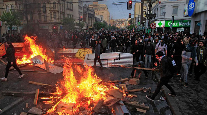 به گزارش رویترز ،با تداوم تظاهرات خشونتآمیز در سانتیاگو، پایتخت شیلی، پلیس این کشور برای متفرق کردن معترضان به زور متوسل شد. اعتراضها در سانتیاگو بیش از یک ماه است که ادامه دارد و بخشی از اعتراضهایی است که در سراسر شیلی در جریان است.هدف از تظاهرات مردم شیلی فشار بردولت به منظور ارتقای استانداردهای زندگی از طریق افزایش دستمزدها و بهبود کیفیت نظام آموزشی است. سباستین پینه را رئیسجمهور شیلی، اخیرا اعلام کرد تعداد نیروهای پلیس در خیابانها افزایش خواهد یافت و اختیارات جدیدی به آنها داده خواهد شد تا اماکن عمومی محافظت کنند.گروههای مدافع حقوق بشر ارتش شیلی را به استفاده از زور برای سرکوباعتراضهای خشونت آمیز متهم میکنند.سازمانهای حقوق بشری اعلام کرده اند در اعتراضهای اخیر ۲۶ نفر کشته و بیش از دو هزار و ۳۰۰ نفر مجروح شدهاند.