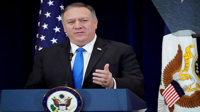 مایک پمپئو در واکنش به سخنان خامنه‌ای که گفته بود امریکا ویروس کرونا را برای نابودی ایرانی‌ها و بر اساس ویژگی‌های ژنتیکی ایرانی‌ها تولید کرده، با انتشار بیانیه‌ای سخنان خامنه‌ای را خطرناک دانست و گفت چنین اظهاراتی مردم ایران و جهان را در معرض خطر بزرگ‌تری قرار می‌دهد. وزیر امور خارجه امریکا در این بیانیه ضمن اشاره به ادامه‌ی پرواز‌های خط هوایی ماهان به چین بعد از شیوع ویروس کرونا اظهار داشت ایران بااین اقدامات به گسترش ویروس در کشور کمک کرده است. مایک پمپئو همچنین ایران را عامل انتشار به دست‌کم پنج کشور مستقیما از ایران وارد دانست که جان میلیون‌ها نفر دیگر را به خطر انداختند.وی همچنین گفت رژیم ایران هشدارهای مکرر مقامات بهداشتی خود را نادیده گرفت و نخستین مورد مرگ ناشی از کرونا در آن کشور را دست‌کم به مدت نه روز انکار کرد. وی گفت شمار موارد ابتلا و مرگ نیز بسیار بیشتر از آن چیزی است که رژیم به آن اعتراف می‌کند وی همچنین گفت در حالی که مقامات رژیم ایران درخواست منابع مالی بیشتری کرده‌اند، یادآوری این نکته ضروری است که ایران از سال ۲۰۱۲ تاکنون بیش از ۱۶ میلیارد دلار صرف تامین مالی تروریسم در خارج از کشور کرده و از معافیت‌های تحریمی برجام برای پر کردن خزانه‌های نیروهای نیابتی‌اش استفاده کرده است. وی همچنین مقامات رژیم بیش از یک میلیارد یورو که به تهیه تجهیزات پزشکی تخصیص یافته بود را دزدیدند و به انبار کردن تجهیزات به شدت مورد نیازمانند ماسک، دستکش، و سایر تجهیزات پزشکی به منظور فروش آنها در بازار سیاه ادامه می‌دهند.وی همچنین اتهامات تحریم را رد کرد و گفت تحریم‌های ایالات متحده واردات محصولات غذایی، دارو، تجهیزات پزشکی، و دیگر اقلام بشردوستانه را در بر نمی‌گیرد. مدارک ایران نشان می‌دهد که شرکت‌های بهداشتی‌شان توانسته‌اند از ماه ژانویه تاکنون کیت‌های آزمایش را بدون هیچ‌گونه مانعی از لحاظ تحریم‌های ایالات متحده، وارد کنند.وی همچنین مدعی شد که امریکا بیش از صد میلیون دلار به کشورهای خارجی، از جمله به مردم ایران، پیشنهاد کمک پزشکی داده است اما خامنه‌ای این پیشنهاد را رد کرده چرا که او به طور خستگی‌ناپذیر برای جعل تئوری‌های توطئه و اولویت دادن ایدئولوژی بر مردم ایران تلاش می‌کند.