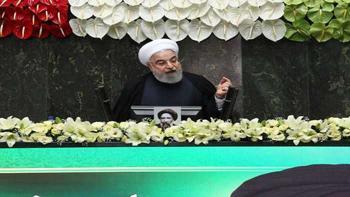 وی که جلسه افتتاح مجلس یازدهم را به ارائهی گزارش در خصوص عملکرد دولت خود اختصاص داده بود، در ادامه ی اظهاراتش با اشاره به تحریمهای سختی که علیه دولت اعمال شده است بر ایستادگی و بردباری دولت برای مقابله با مشکلات پیشامده تاکید کرد و اظهار داشت با اقدامات دولت دشمنان نتوانستند به هدف خود که فروپاشی اقتصاد ایران است دست یابند.