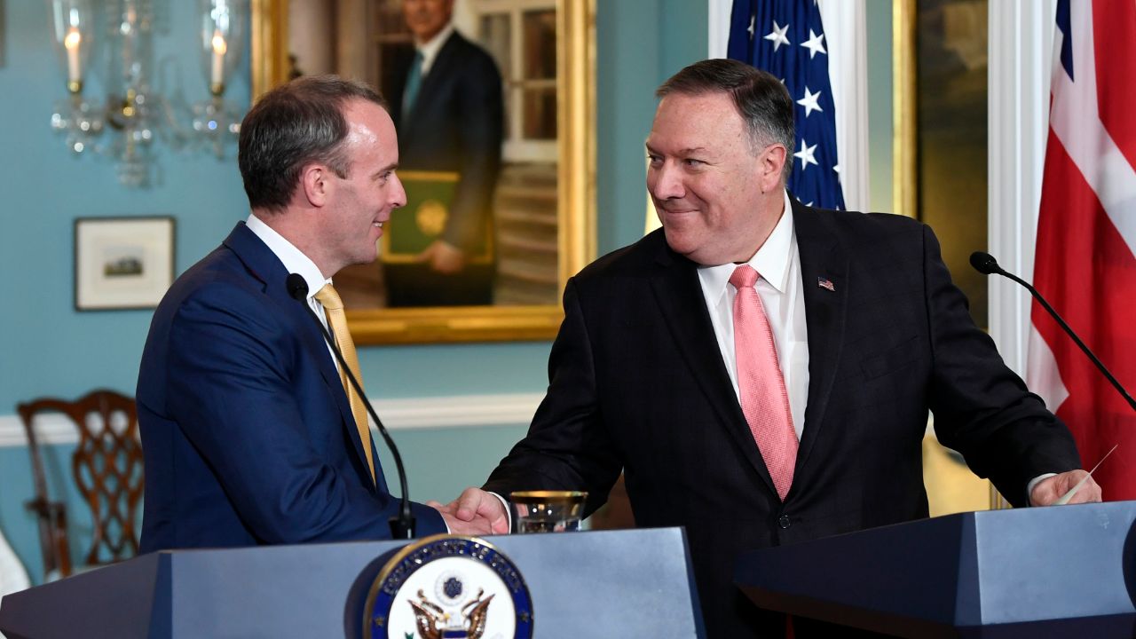 مایک پمپئو، وزیر خارجه آمریکا، به همراه دومنیک راب، همتای بریتانیایی خود، در یک کنفرانس خبری درمورد اقدامات مشترک دو کشور برعلیه چین و ایران سخن گفت مسیله تحریم تسلیحاتی ایران و شرکت هواوی از امهات این کنفرانس بود.آقای پمپئو در سخنان خود گفت که در مذاکرات دو طرفه به موضوع ایران نیز اشاره شده است.