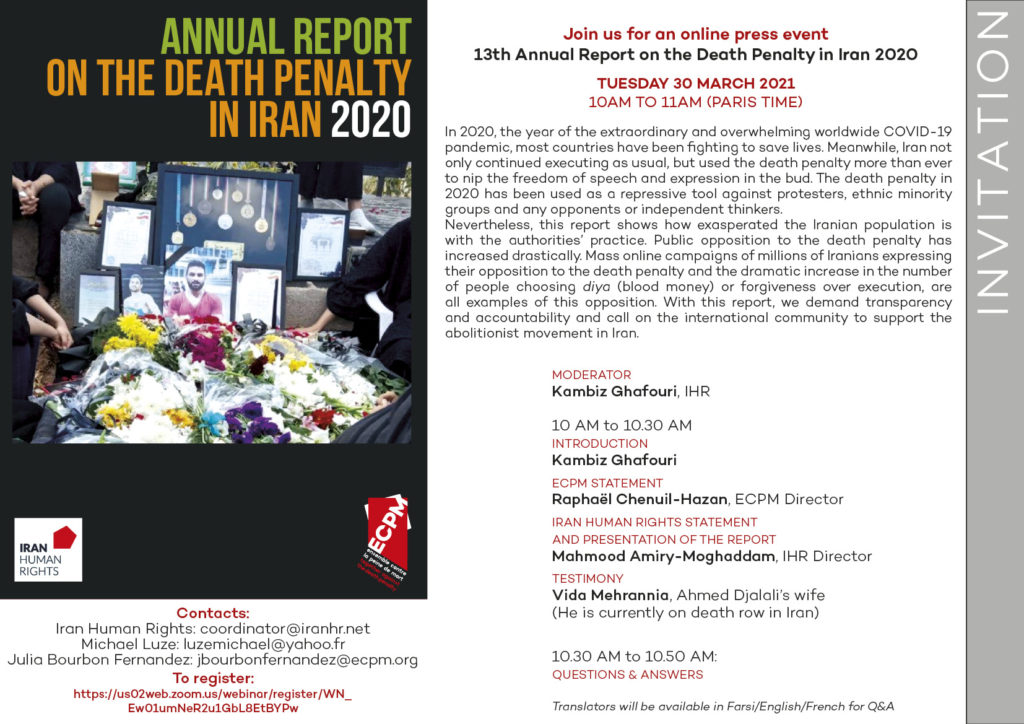 Join Iran Human Rights (IHR) and ECPM for an online press event;